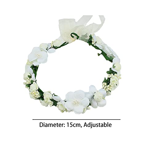 Corona per Capelli da Sposa, Fascia perCorona di Fiori da Polso Floreale, Ragazza da Donna per Festival, Feste, Matrimoni, Spiaggia (Beige)