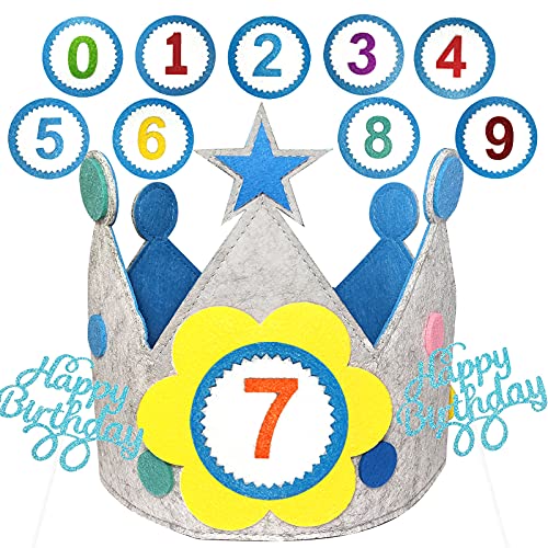 XL Corona di Compleanno,Corona Compleanno Bambini,Corona Diadema Bambini, Corona Compleanno Ragazzo Numeri Intercambiabili da 0-9,Feltro Tessuto Corona con Numeri 0-9(Blu)