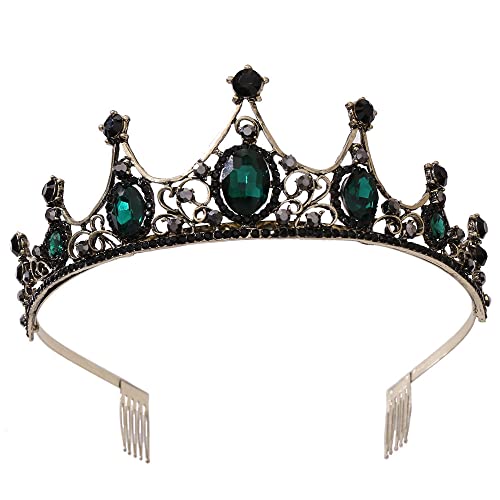 Corona Donna,Gotico Oro Diadema Nero-Verde Barocco Strass Pettine Gioielli Per Capelli Per Ragazza Regina Sposa Principessa Compleanno Matrimonio Spettacolo Ballo Di Fine Anno Costume Di Halloween Cop