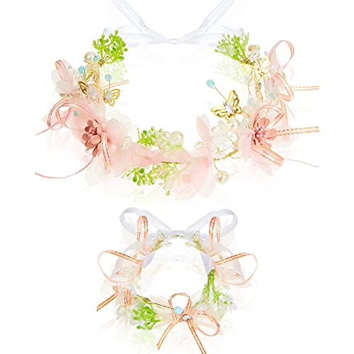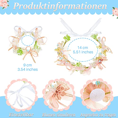 Corona di Fiore Ghirlande Floreali Copricapo per Capelli Fascia di Testa con Fiori da Sposa Cerchietto Floreale da Nozze Matrimonio Regolabile con Braccialetti da Polso da Donna Spiaggia