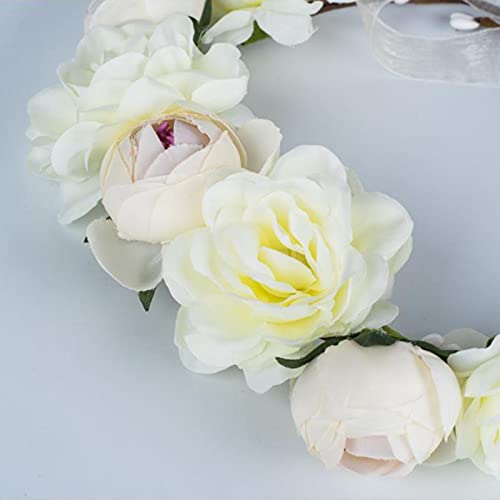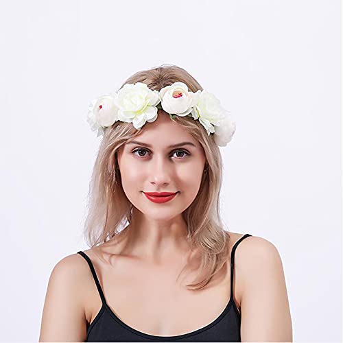 Corona Di Fiori Per Matrimonio Cerchietto Con Corona Di Fiori Fasce Per Ghirlande Floreali Capelli Ghirlanda Floreale Corona Di Fiori Per Il Festival Della Festa Della Cerimonia Nuziale (bianco)