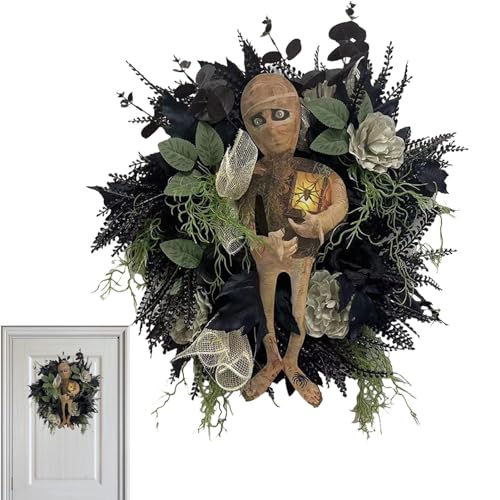 ⇁Allegria natalizia: eleva l'allegria natalizia con la nostra ghirlanda a mummia di Halloween fatta a mano. Il suo fascino inquietante e il design unico lo rendono un perfetto arredamento per porte, finestre o pareti. Stupisci la tua famiglia, i tuoi amici e i tuoi colleghi con questo spettrale regalo natalizio.