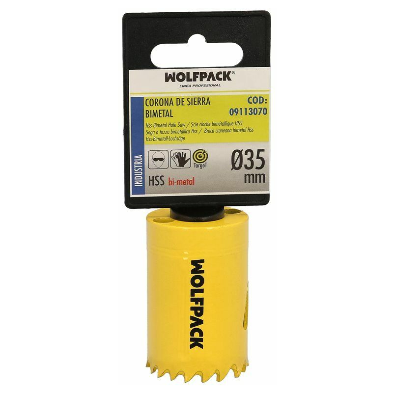 Corona bimetallica Target Saw - Dimensioni: Ø 35 mm. - Realizzata in una lega con elevata durezza e resistenza all'usura. - Denti temprati termicamente, che gli conferiscono un'elevata stabilità ai taglienti. - Base della corona rinforzata. - Fori laterali per l'evacuazione del truciolo e un migliore raffreddamento. - Ideale per realizzare fori su acciaio dolce, ghisa, ottone, alluminio e legno. - Articolo noto come trapano per legno, trapano per legno, sega per legno, sega per legno.