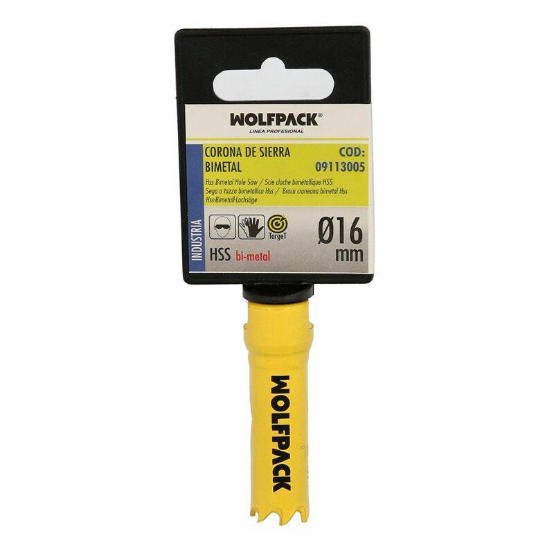 Corona bimetallica Target Saw - Dimensioni: Ø 16 mm. - Realizzata in una lega con elevata durezza e resistenza all'usura. - Denti temprati termicamente, che gli conferiscono un'elevata stabilità ai taglienti. - Base della corona rinforzata. - Fori laterali per l'evacuazione del truciolo e un migliore raffreddamento. - Ideale per realizzare fori su acciaio dolce, ghisa, ottone, alluminio e legno. - Articolo noto come trapano per legno, trapano per legno, sega per legno, sega per legno.