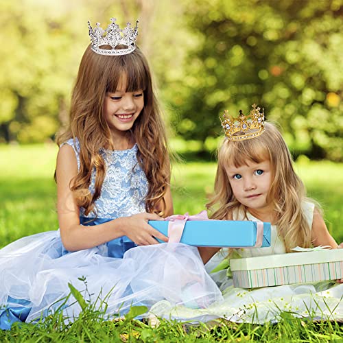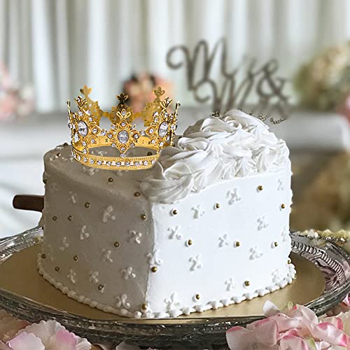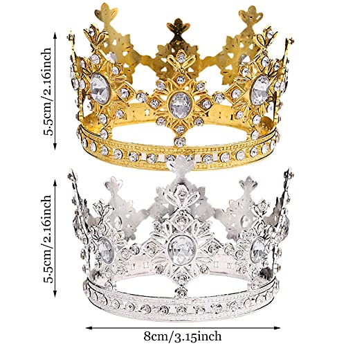 2 Corona Torta Topper, Corona d'Oro e d'Argento con Strass, Dorato Corona Decorazioni per Compleanno, Cake Topper Decorazione per Matrimoni Compleanno Bambino Doccia Festa Valentino Accessori