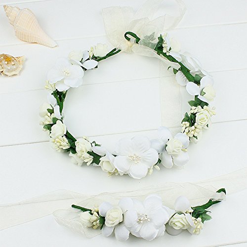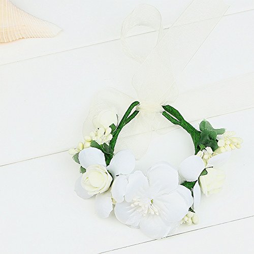 Coroncina Fiori Capelli con Bracciale a Fiore Regolabile per Donna Ragazza per Comunione Sposa Damigella d'onore per Festa Matrimonio Fotografia (Beige)