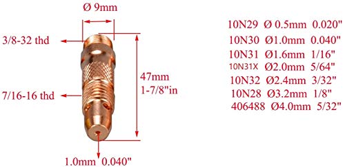 Corpi portapinze TIG 10N30 1.0mm 10N31 1.6mm 10N32 2.4mm 10N28 3.2mm 406488 4.0mm Kit Fit Torcia per saldatura TIG DB SR WP 17 18 26 5pz