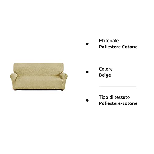 Corredocasa - Copridivano Elastico 4 Posti, Poliestere-Cotone, Beige, da 170 a 250 cm