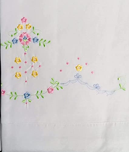 Corredocasa Lenzuolo Ricamato con Orlo al Giorno in Policotone Matrimoniale con 2 Federe (Lenzuolo sopra e 2 Federe)