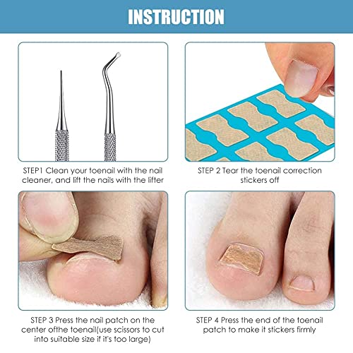 Come usare: Patch per la correzione dell'unghia del piede: puoi attaccare i nostri adesivi per la correzione dell'unghia del piede sulla superficie dell'unghia per produrre un rimbalzo verso l'alto, che consentirà alle unghie che sono incorporate nella carne di essere estratte lentamente, può trattenere il le unghie modellano e r