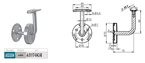 Quantità di sostegni: 3. Tutti gli accessori costituenti il kit, ad esclusione dei tasselli, sono in acciaio inox Aisi 304 satinato. Troverai nella descrizione che segue un'elenco più dettagliato di tutto il materiale che ti verrà fornito.