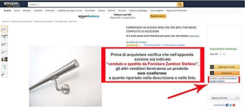 Importante: se il corrimano va installato in presenza di atmosfere aggressive (ovvero ricche di cloro, tipicamente presenti in prossimità di zone marine, piscine, laghi, acquari, fontane, ecc.) sia all'interno che all'esterno Vi invitiamo a contattarci direttamente allo 0499404525 prima di effettuare l'ordine.