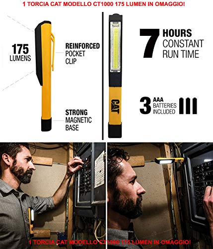 Solamente se acquistate da Forniture Zambon Stefano (vedi foto per capire come fare) avrete in omaggio una bellissima torcia tascabile Cat modello CT1000: 175 lumen, fino a 7 ore di autonomia, base magnetica ed aletta per poterla inserire e bloccare in qualsiasi taschino. Poco più ingombrante di una penna si presta benissimo per qualsiasi tipo di utilizzo!
