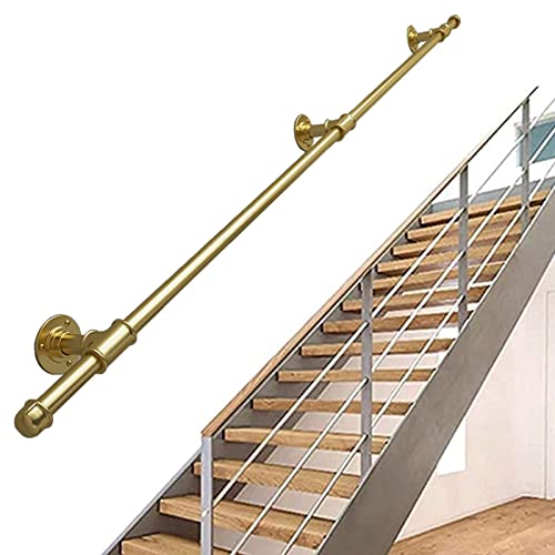 Corrimano Per Interni Gradini Esterni Maniglione 1 2 3 4 5 6 Metri,Ringhiera Per Scale Kit di Supporto Per Corrimano di Sicurezza Montaggio A Parete Metallo Ferro Battuto Oro S/13.1Ft/400Cm