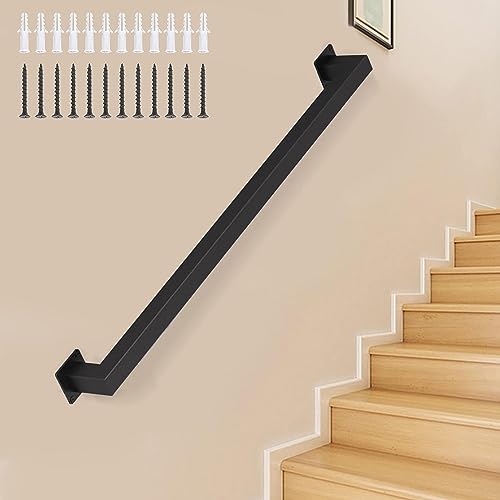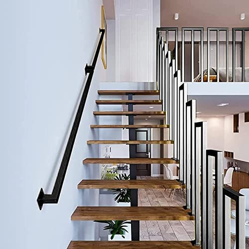Corrimano per ringhiera per scale nero - Kit completo. Corrimano a parete Ringhiere per scale in ferro battuto in metallo per gradini esterni o scale interne - Design a tubo quadrato (Size: 280cm)
