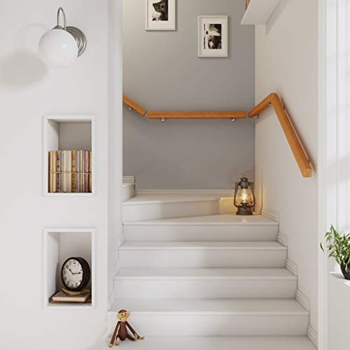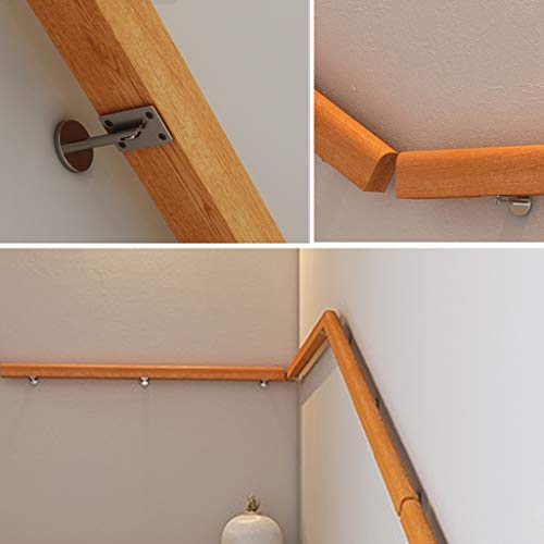 Kit corrimano per Scale con staffe in Acciaio Inossidabile e Tappi terminali |Ringhiera per Scale in Legno |Corrimano di Sicurezza Antiscivolo Montato a Parete per Interni ed Esterni