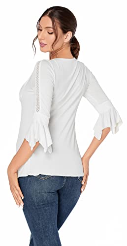 J.Corrine Maglia Donna Manica a Campana 3/4 Camicetta Elegante Scollo a V con Bottone Tops di Henley Pieghettata Tunica Maglietta Beige 2XL