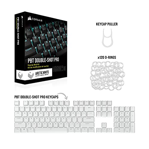 CORSAIR PBT DOUBLE-SHOT PRO Keycap Mod Kit - Double-Shot PBT Keycaps - Arctic White - Standard Bottom Row - Textured Surface - 1.5mm-Thick Walls - O-ring Dampeners