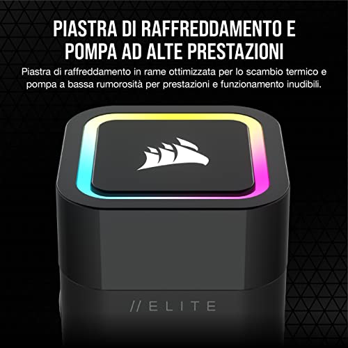 Corsair H100x RGB ELITE Sistema di Raffreddamento a Liquido per CPU - 16 LED RGB Dinamici - Ventilatore PWM SP120 RGB ELITE Series - Intel® LGA 1700, 1200, 115X, 2066, AMD® AM5/AM4 - Nero