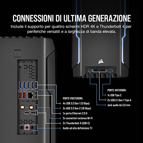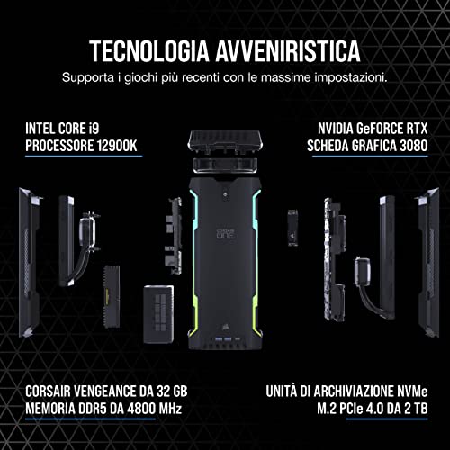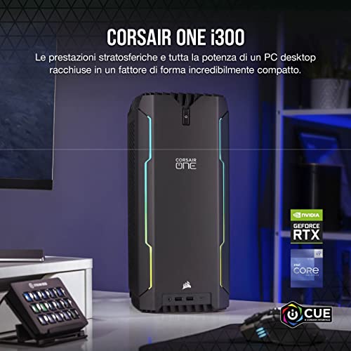 Corsair ONE i300 PC Gaming Compatto (CPU Intel Core i9-12900K, Scheda Grafica NVIDIA GeForce RTX 3080, Memoria DDR5 VENGEANCE da 32 GB, Thunderbolt 4, Windows 11 Pro) Nero