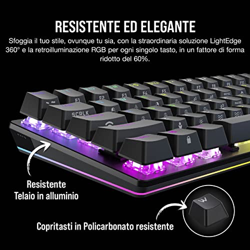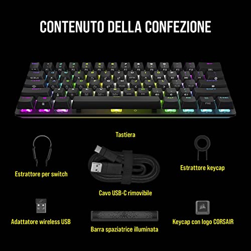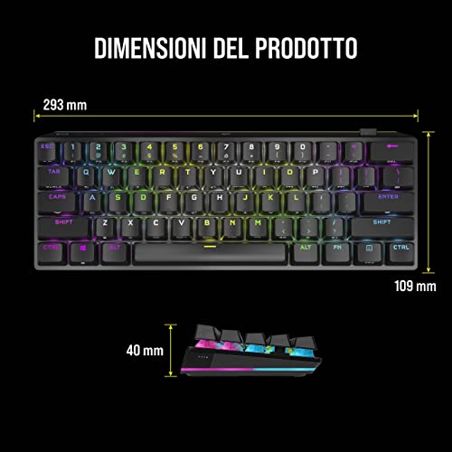 Corsair K70 PRO MINI WIRELESS RGB 60% Tastiera gaming meccanica con keycap in policarbonato (Switch CHERRY MX Red intercambiabili, Retroilluminazione LED RGB, Resistente telaio in alluminio) Nero