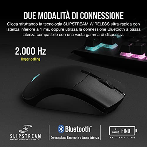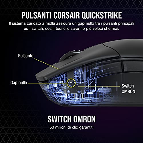 CORSAIR SABRE RGB PRO WIRELESS CHAMPION SERIES Mouse da Gioco FPS/MOBA Ultraleggero - 26.000 DPI - Design Ergonomico - Compatibile con iCUE - PC, PS5, PS4, Xbox - Nero