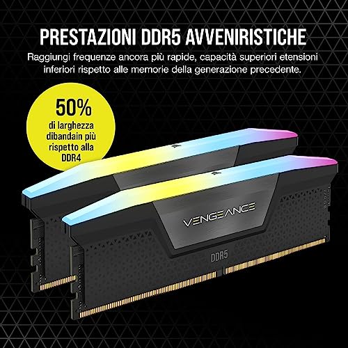 CORSAIR VENGEANCE RGB DDR5 RAM 64GB (2x32GB) 6000MHz CL30 Intel XMP Compatibile iCUE Memoria per Computer - Nero (CMH64GX5M2B6000C30)