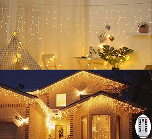 Luce per tenda ghiacciolo: Un set di 140 luci natalizie a LED per interni ed esterni, lunghezza della luce 3 m con filo di piombo da 50 cm.