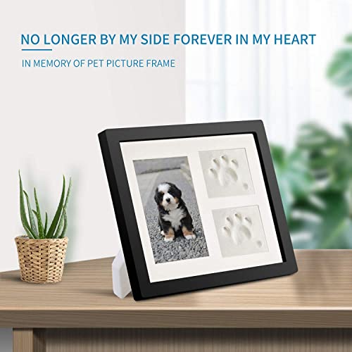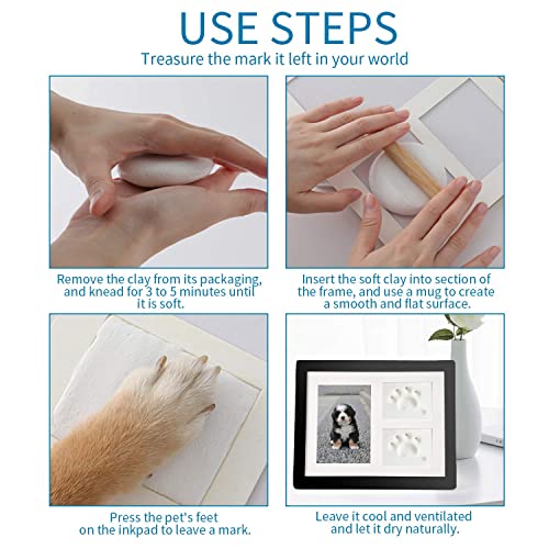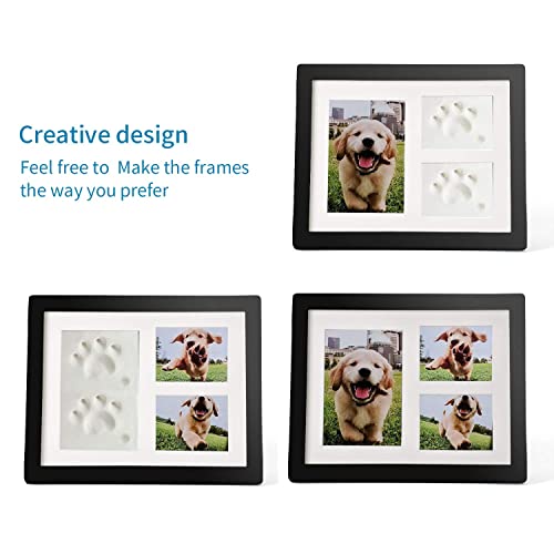 Coryfeel Cornice portafoto commemorativa per animali domestici con stampa di zampe di cane o gatto, con kit di impronte di argilla, perfetta cornice per gli amanti degli animali domestici, nero/bianco