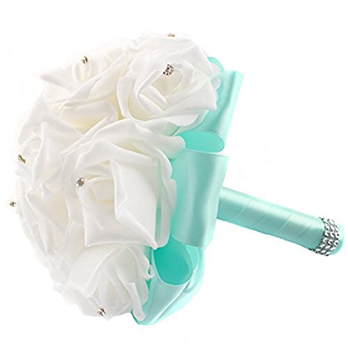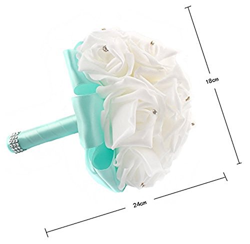 Cosanter - Matrimonio Decorazione Rosa per la Sposa Bouquet con Artificiale Strass Realizzato a Mano Ricevimento di Nozze(#Blu)