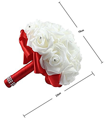 Cosanter Matrimonio Decorazione Rosa per la Sposa Bouquet con Artificiale Strass Realizzato a Mano Ricevimento di Nozze