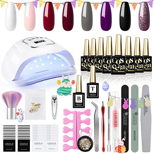 Coscelia Set 8 * 10ml Smalti Semipermanenti Unghie Gel 110W Lampada LED+UV per Unghie, Smalto in Soak off Base Coat Top Coat Gel con gli Strumenti Decorazione per Manicure e Pedicure