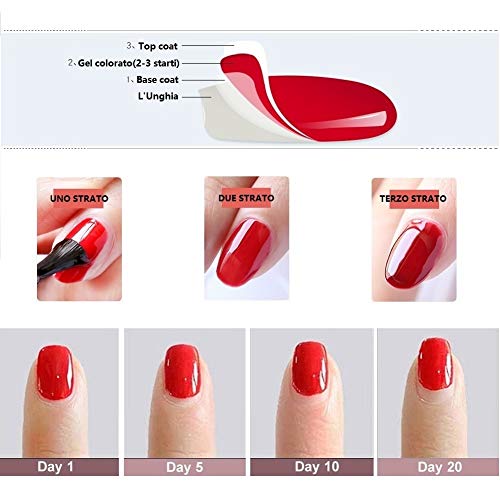Lucidità ottimale, tempo di asciugatura: 2 minuti in lampada Uv per l'indurimento delle unghie.