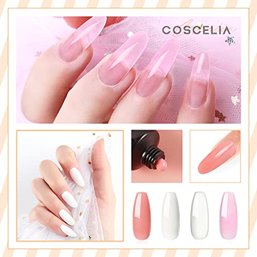 Coscelia Kit Poly Unghie Completo: 4pz * 15ml Poly Estensione per Unghie 36W LED+UV Lampada, Poly Prollunga Gel con Base Coat Top Coat Smalto in Gel per Unghie Ricostruzione Starter Kit