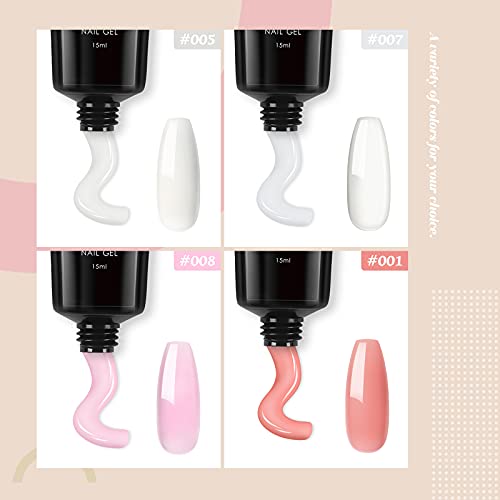 Poly Estensione Ricostruzione Gel Rapido: Ci sono 4 colori poly estensione gel colorati, bianco, trasparente, rosa e orancia, questi gel possono fare le unghie prollunga rapido, durata e lucido.