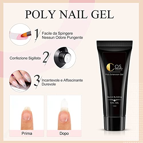 Coscelia Kit Ricostruzione Unghie 110W Unghia Lampada 4pz Poly Estensione Gel per Unghie Estensione, Base Coat Top Coat Smalto Semipermanente Gel con gli Strumenti per Nail Art