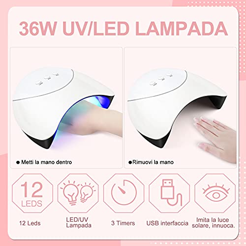 Coscelia Kit Semipermanente Unghie, 20pz Gel per Unghie, 3pz UV Estensione Gel e 36W Lampada LED+UV, Smallto in Soak off Gel con gli Strumenti Necessari per Manicure Completo