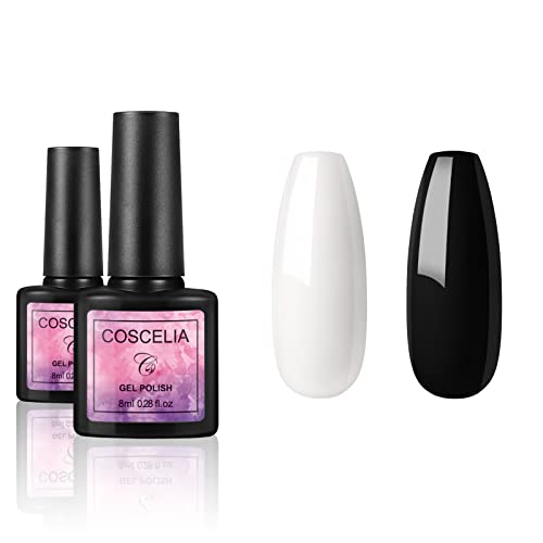 Coscelia Set Smalti Semipermanenti 2 Colori Gel Semipermanente per Manicure Colore Bianco Colore Nero
