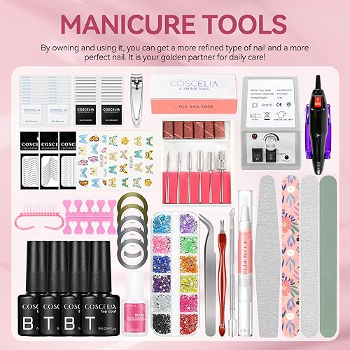 COSCELIA Kit Smalti Semipermanenti 46 Colori Smalti Gel Unghie, Set con 110W Lampada UV/LED Soak Off Base e Top Coat Semipermanente Fresa per Unghie Kit Manicure Completo