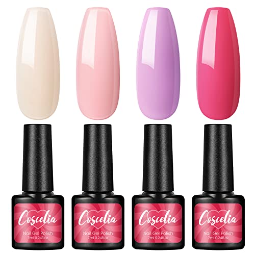 COSCELIA Set Smalti Semipermanenti 4 Colori Smalti in Gel Unghie 6W Lampada LED per Unghie Set per Manicure Semipermanente