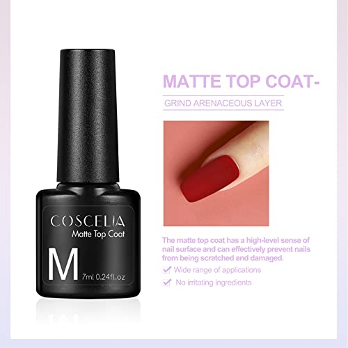 COSCELIA Smalto semipermanente opaco top coat semi permanente per unghie gel per unghie con finitura UV LED, Soak off, 1 x 7 ml