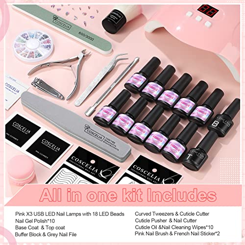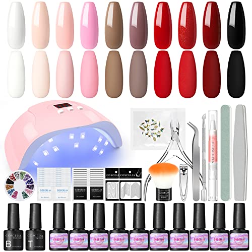 COSCELIA Kit per Unghie Semipermanente con 36w U V/LED Lampada, 10 pcs Smalto Semipermanente Colore Classico, Kit Manicure Smalti per Unghie