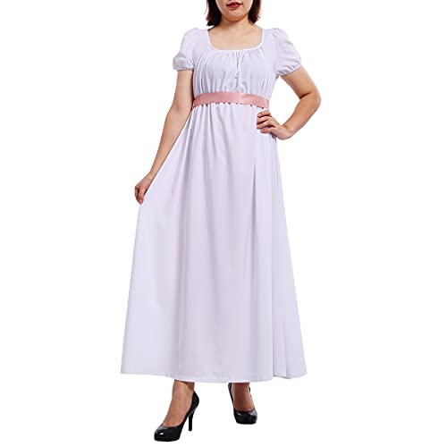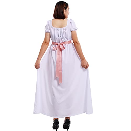 COSDREAMER Abito da Donna Regency Abito Medievale Vittoriano retrò a Vita Alta con Maniche a Nastro (Bianco, 2XL)