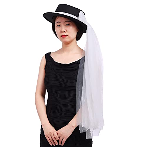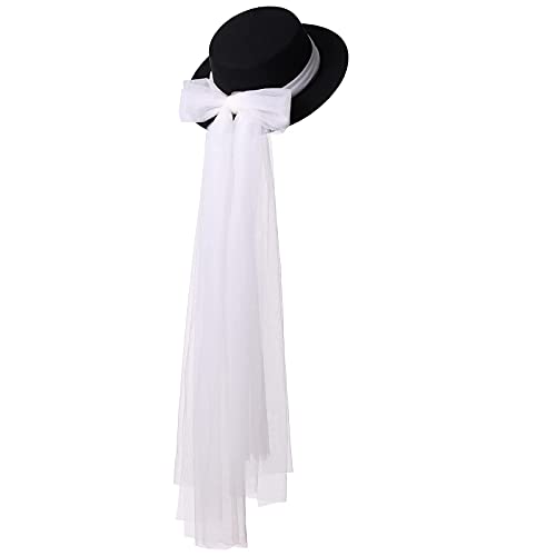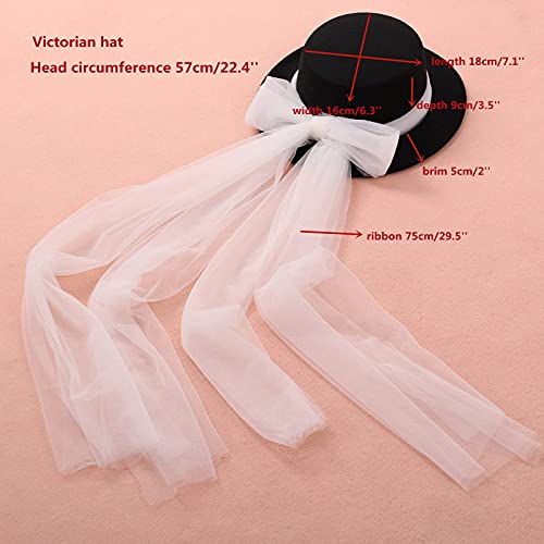 COSDREAMER Cappello da donna nero bianco gotico Steampunk cappello irregolare velo cappello da festa a tema (fiocchi bianchi)