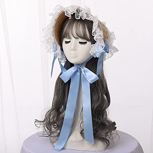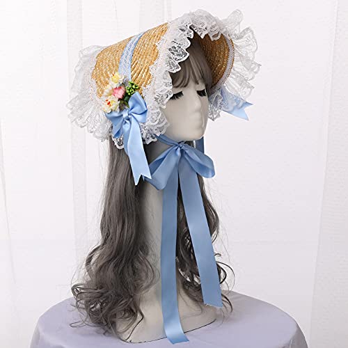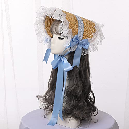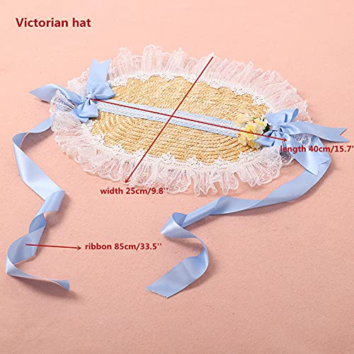 COSDREAMER Cappello da Sole da Donna, Stile Vittoriano, con Fiocchi di Paglia, Colore: (Blu)