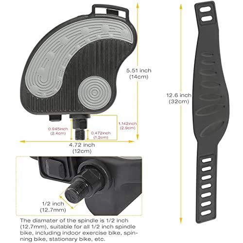 DESIGN ERGONOMICO E UMANIZZATO - Questi pedali per bici da fitness progettati pedale ergonomico e cinturini umanizzati, puoi regolarli facilmente per adattarli al tuo piede e goderti un'esperienza comoda e salutare.
