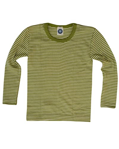Cosilana Canottiera per bambini a maniche lunghe, in 70% lana proveniente da allevamento biologico controllato e 30% seta, Verde a righe, 116