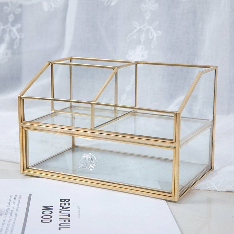Impeccabile portagioielli con rapporto aureo e rivela un'elegante qualità nella semplicità. ❀Adatto per profumi, prodotti per la cura della pelle, rossetti, fard, ombretti, cipria, ecc. ❀Con un cassetto per evitare la polvere e mantenere puliti i tuoi bellissimi cosmetici. ❀Mantieni il tuo desktop pulito e ordinato, comodo per trovare i tuoi cosmetici. ❀Perfetto per l'uso personale al tavolo da toeletta o per l'uso professionale in un negozio al dettaglio. DESCRIZIONE 100% nuovo di zecca e di alta qualità Caratteristica: Impeccabile portagioie con rapporto aureo e rivela una qualità elegante nella semplicità. Adatto per profumi, prodotti per la cura della pelle, rossetti, fard, ombretti, cipria e così via. Con un cassetto per evitare la polvere e mantenere puliti i tuoi bei cosmetici. Mantieni il tuo desktop pulito e ordinato, comodo per trovare i tuoi prodotti di bellezza. Perfetto per l'uso personale al tavolo da toeletta o per l'uso professionale in un negozio al dettaglio. Per