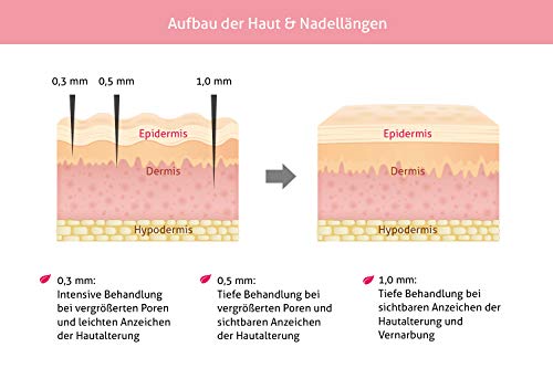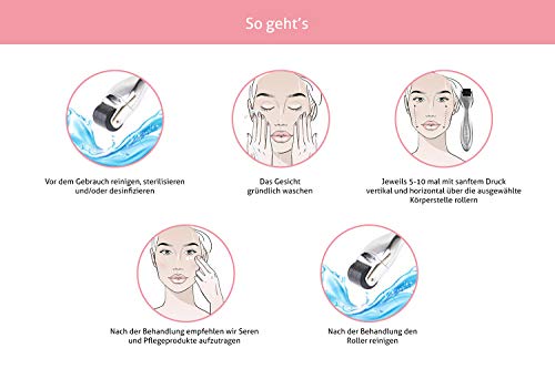 Il rullo Microneedle è adatto per l'uso su viso, collo, décolleté e sul corpo - grazie alla lega di alta qualità del monopattino è particolarmente infrangibile