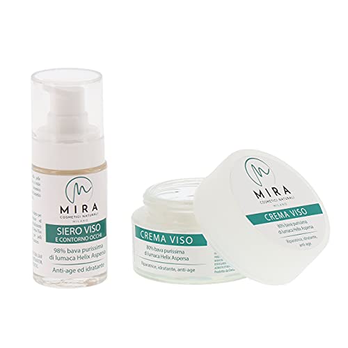 Kit Cosmetici Naturali alla Bava di Lumaca. Con Elegante Sacchetto Ecologico in Juta. Contiene 2 prodotti: Crema Viso 80% di Bava, Siero Viso e Contorno Occhi di 98% Bava. Raffinata Idea Regal